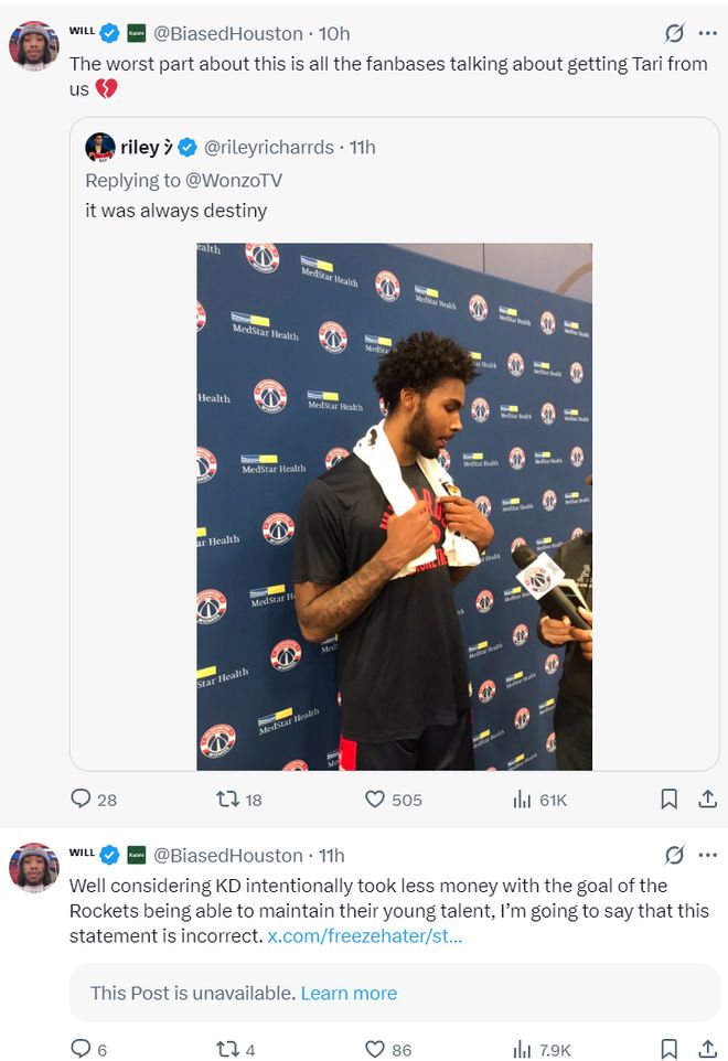 在伊森与火箭续约失败后,奇才媒体已经发布了暗示性的文案,而且还是伊森在华盛顿接受采访的图片,他们暗示伊森会离开火箭。休媒Biased也显得很沮丧,他也知道外界肯定会对伊森的去向议论纷纷。